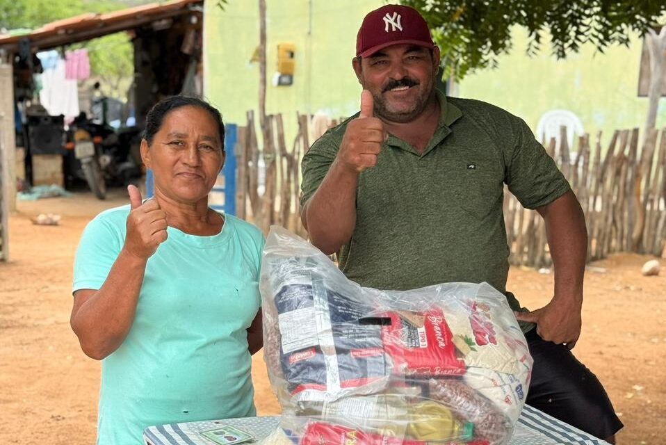 Diferente de ações tradicionais, a entrega das cestas está sendo realizada diretamente nas localidades e nas residências das famílias beneficiadas, evitando deslocamentos até a sede do município e a formação de filas na Secretaria de Assistência Social. A distribuição começou por comunidades como Baixa do Manoel Velho e Angical dos Magos, e seguirá ao longo da tarde e nos dias seguintes, contemplando outras localidades rurais até que todas as mil cestas sejam entregues.