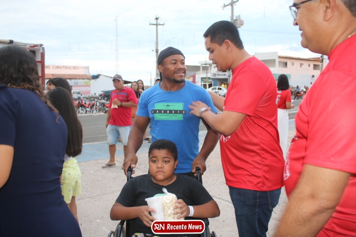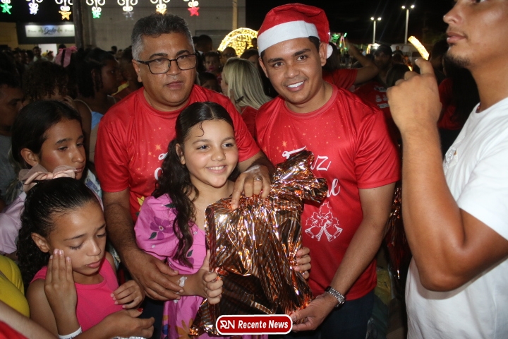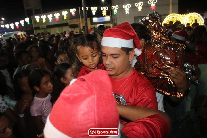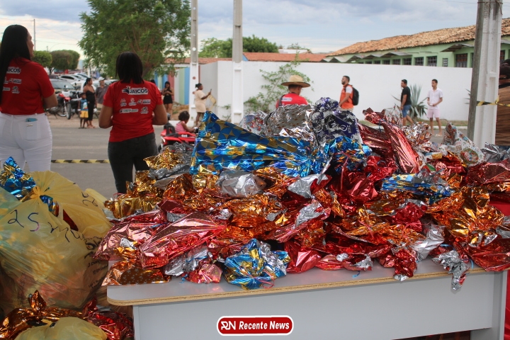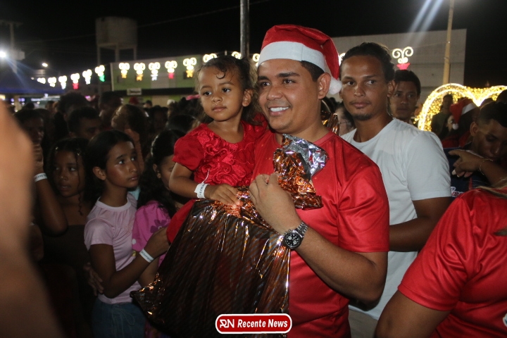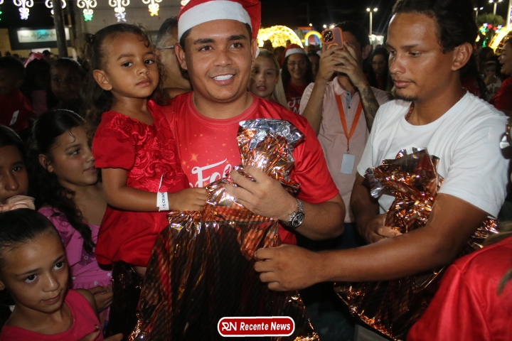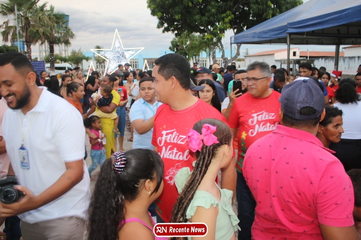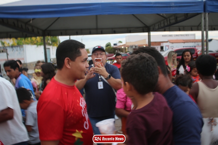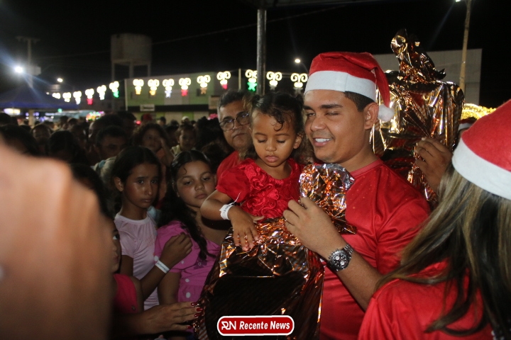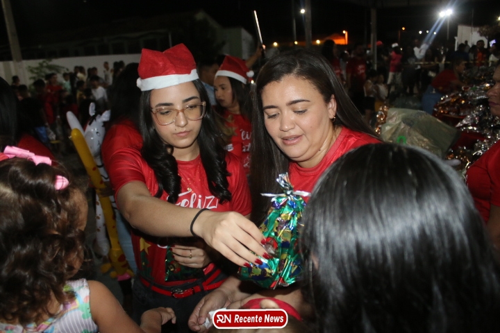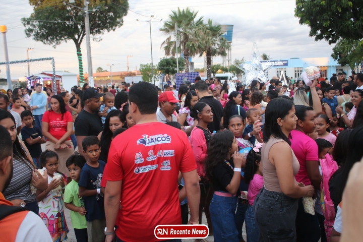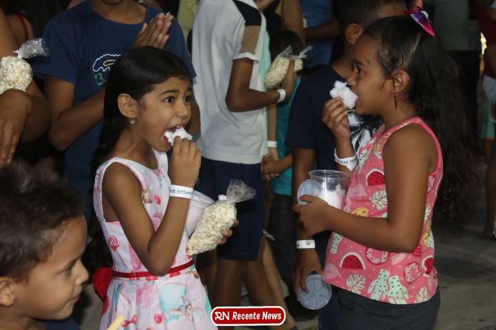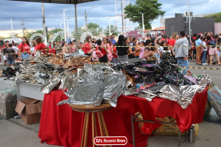 A programação teve início às 17h e contou com a distribuição de mais de 4 mil brinquedos diversos, além de brinquedos infláveis, pula-pula, pipoca e algodão doce, garantindo diversão para crianças de diferentes idades.