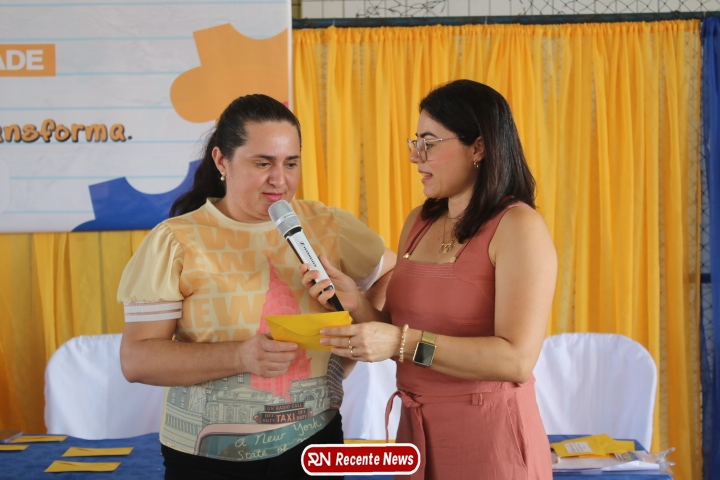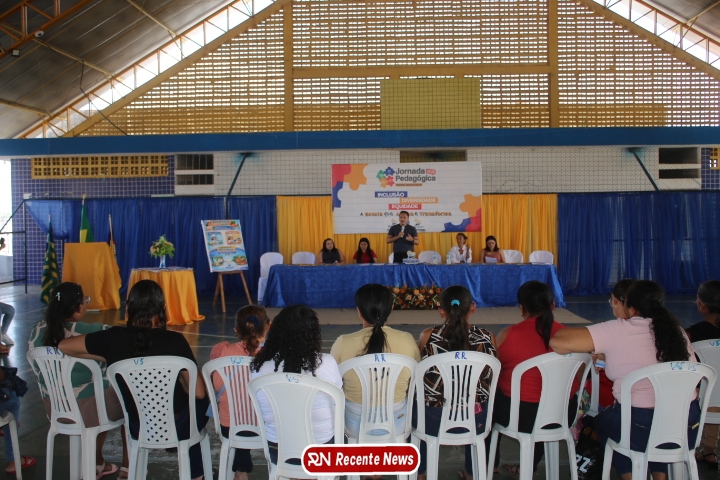 A programação da Jornada Pedagógica 2026 também contou, no turno da manhã (07h40), com uma palestra motivacional com contação de histórias e oficinas lúdicas. A atividade foi destinada a professores, gestores escolares, auxiliares de serviços gerais, vigias e monitores/cuidadoras da rede municipal. A palestra foi ministrada por Chagas Vale e Talita do Monte, que proporcionaram momentos de reflexão, aprendizado e integração entre os profissionais da educação.