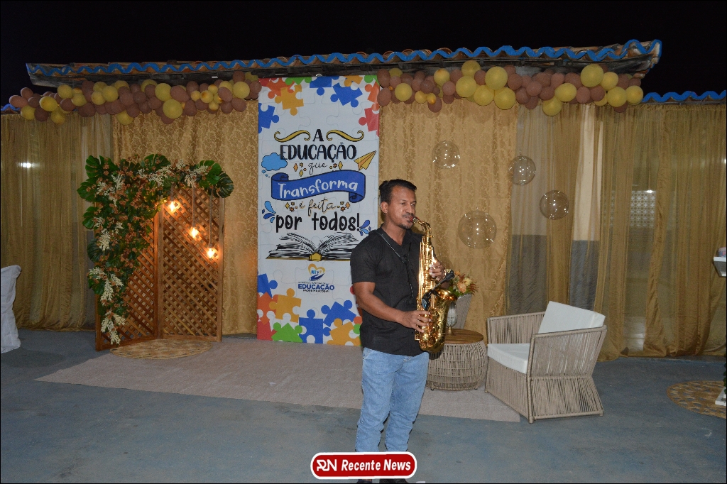 Durante a noite, os convidados foram recebidos em um ambiente acolhedor e preparado com carinho pela equipe da Secretaria de Educação. A programação contou com momentos de homenagens, entrega de lembranças, música ao vivo e um jantar especial de confraternização, proporcionando um clima de alegria e gratidão.