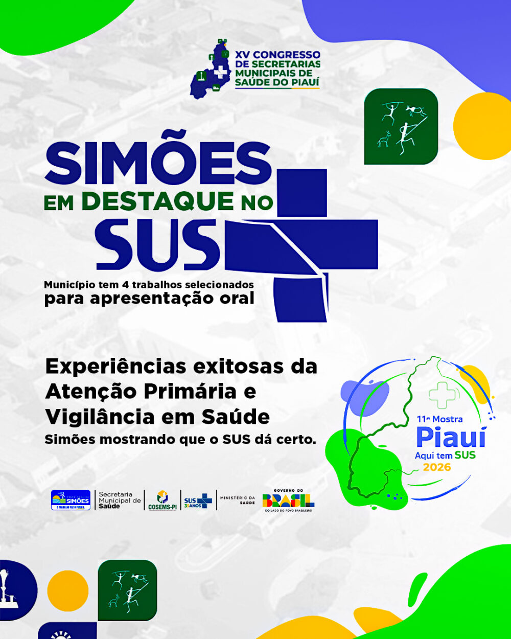 O município de Simões PI, conquistou posição de destaque na 11ª edição da Mostra “Piauí Aqui Tem SUS”, promovida pelo Conselho de Secretarias Municipais de Saúde do Estado do Piauí, ao ter quatro experiências exitosas selecionadas para apresentação oral durante o evento.