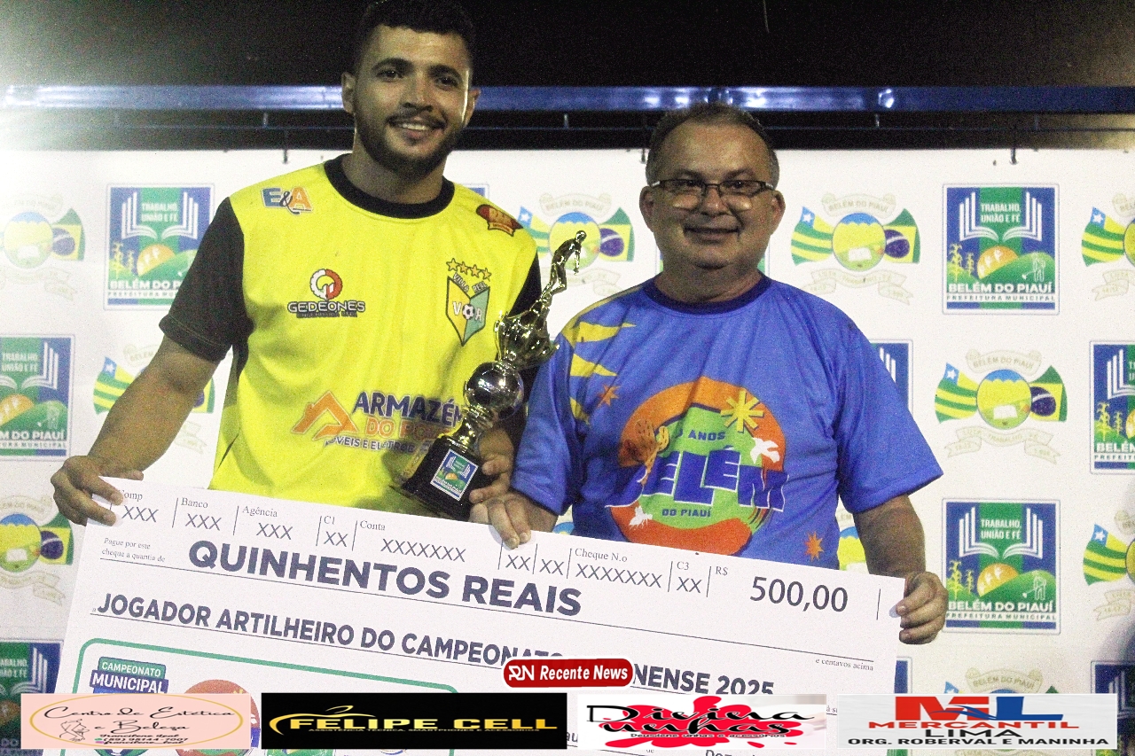 Após o apito final, foi realizada a cerimônia de premiação, que contou com entrega de troféus, medalhas e premiação em dinheiro: R$ 10 mil para o campeão, R$ 5 mil para o vice-campeão e R$ 3 mil destinados ao terceiro colocado. O momento reforçou o apoio e o incentivo ao esporte no município, valorizando o empenho das equipes participantes.