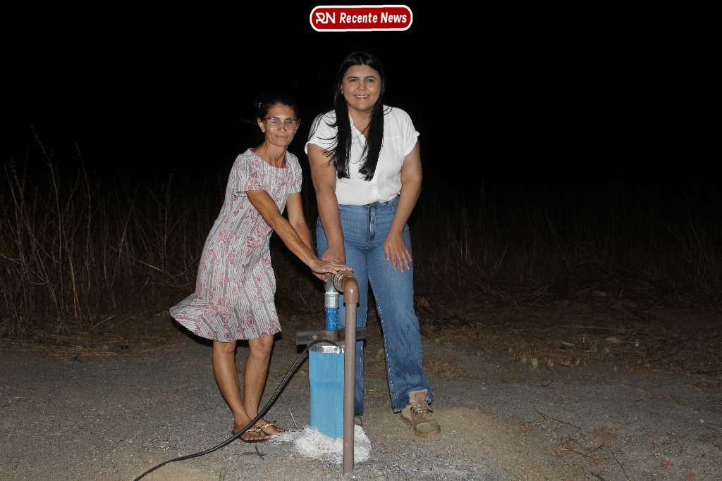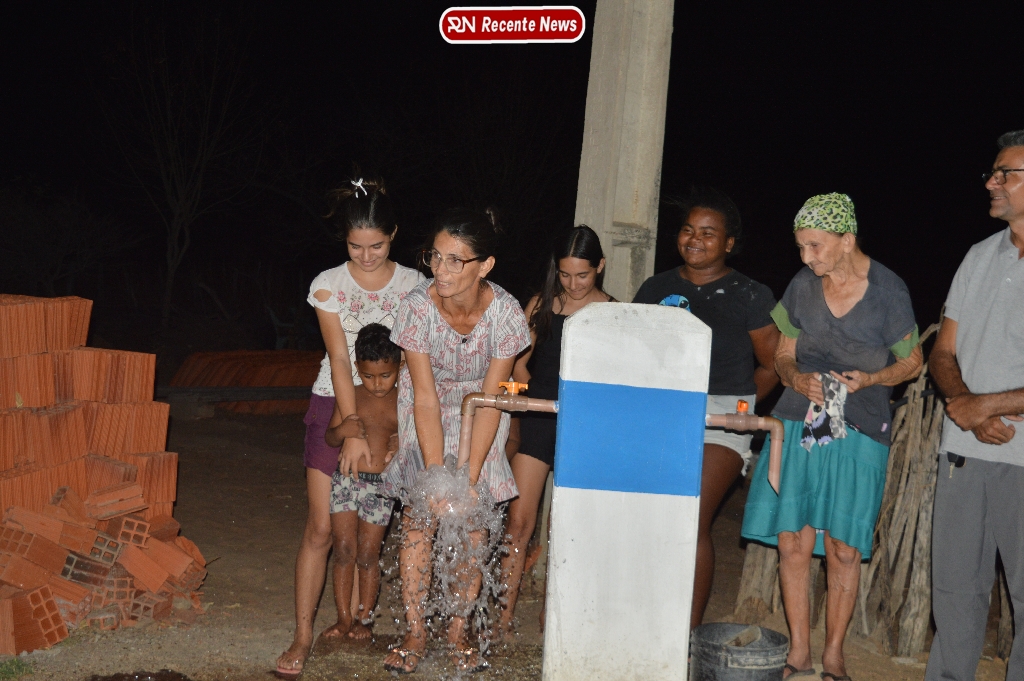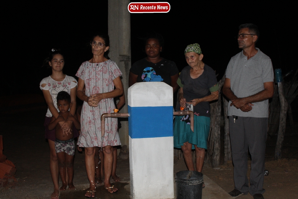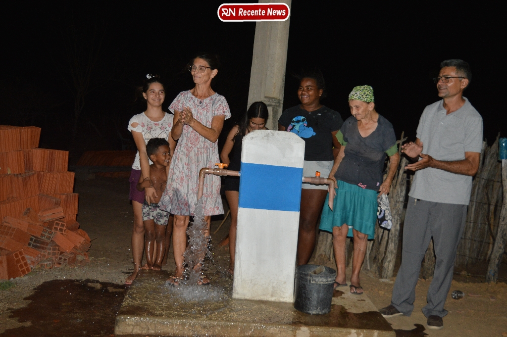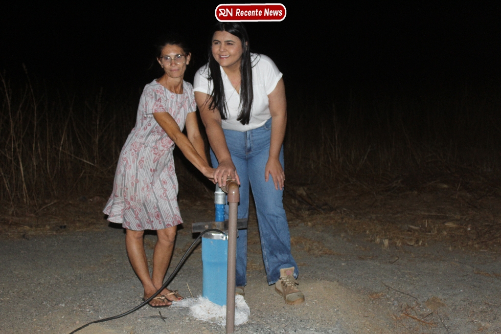 Outro importante avanço foi registrado na localidade Canto Alegre, onde foi inaugurado mais um poço, também custeado com recursos municipais. A obra, que teve um investimento de cerca de R$ 48 mil, beneficia diretamente a residência da senhora Fatinha, onde vivem nove pessoas, entre idosos e crianças. O novo poço traz alívio e segurança hídrica para a família e reforça o compromisso da gestão com as comunidades rurais.