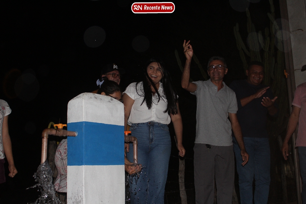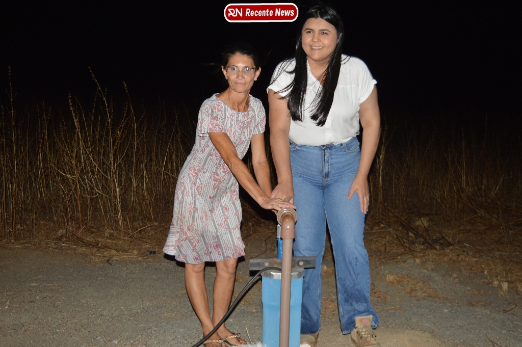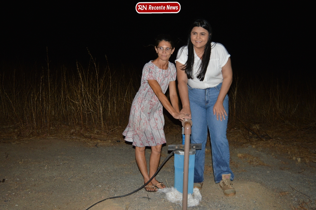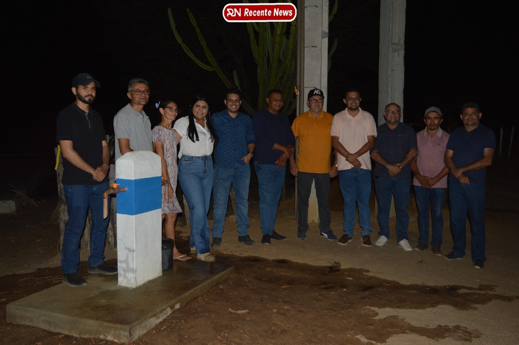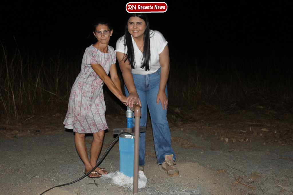 Outro importante avanço foi registrado na localidade Canto Alegre, onde foi inaugurado mais um poço, também custeado com recursos municipais. A obra, que teve um investimento de cerca de R$ 48 mil, beneficia diretamente a residência da senhora Fatinha, onde vivem nove pessoas, entre idosos e crianças. O novo poço traz alívio e segurança hídrica para a família e reforça o compromisso da gestão com as comunidades rurais.
